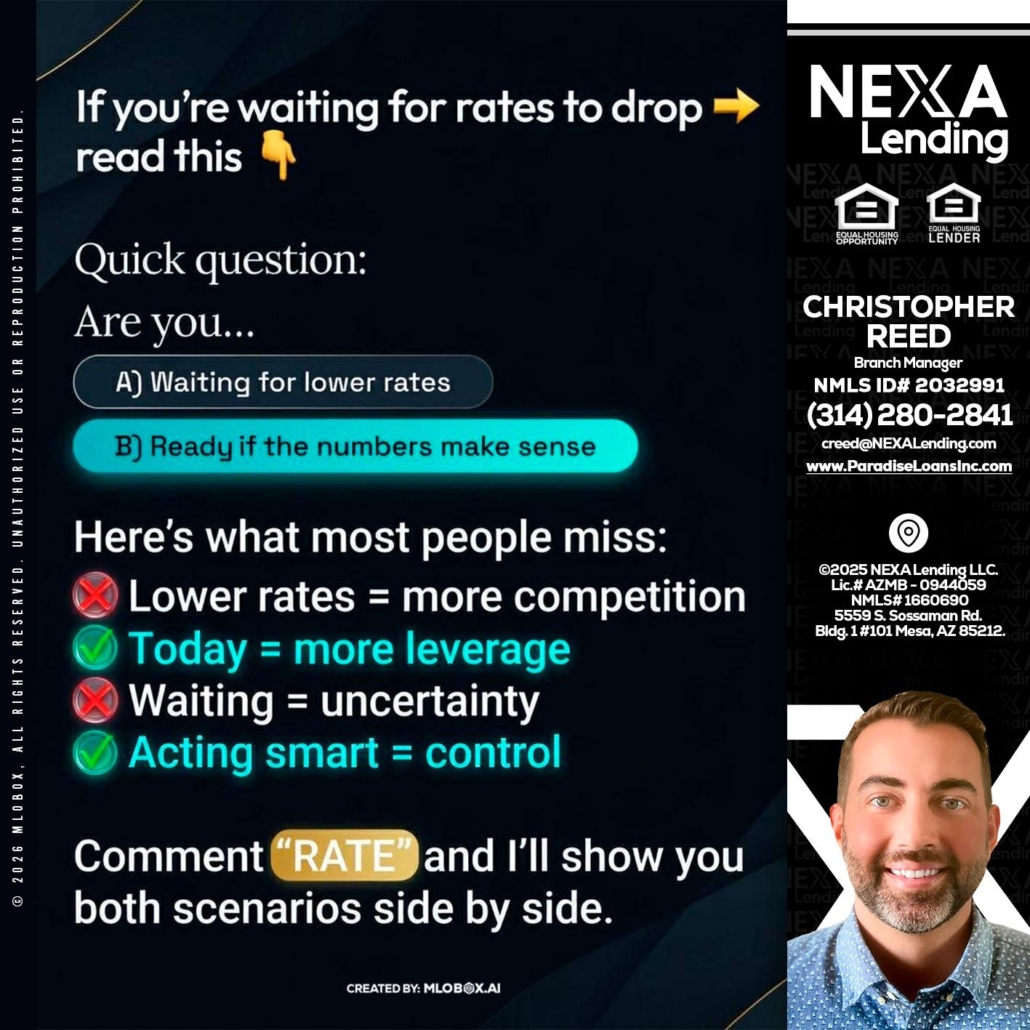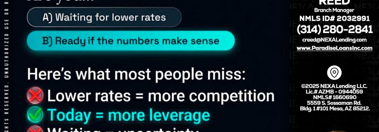 Hi, my name is Christopher Reed. I’m a Loan Officer with NEXA Lending LLC., offering personalized mortgage solutions, fast customized quotes, great rates and service with integrity.